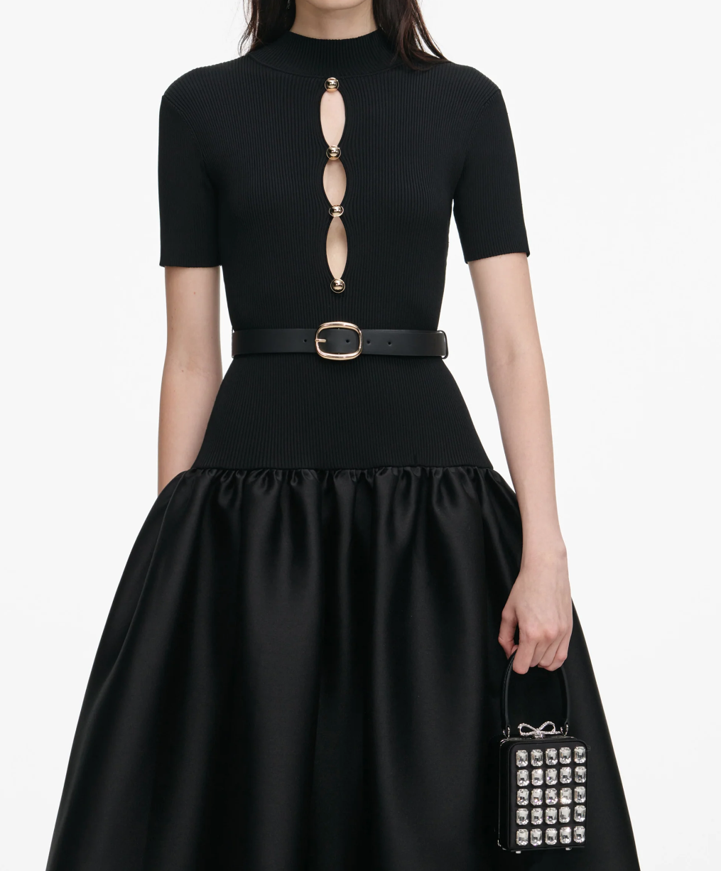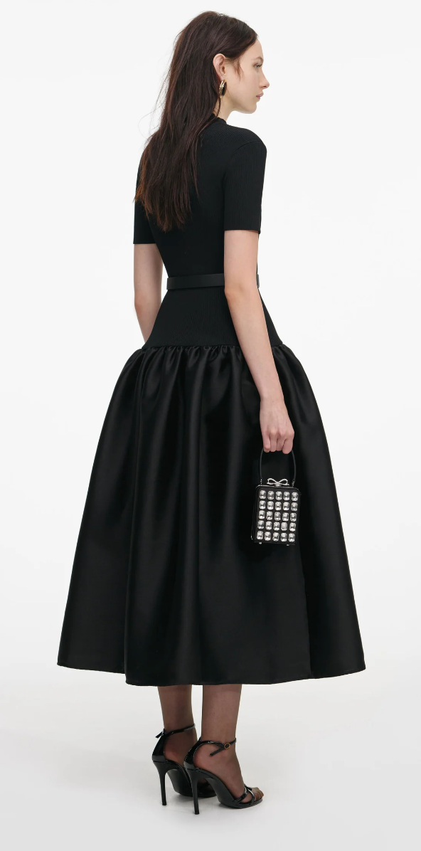 Self Portrait Black Taffeta Contrast Bow Midi Dress
